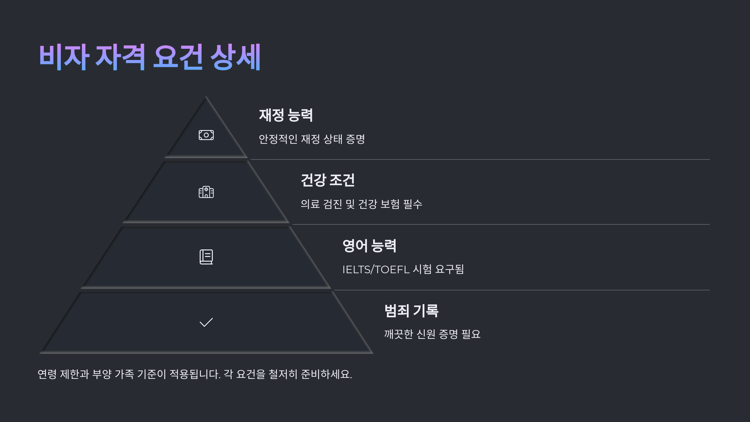 자녀 비자는 25세 미만의 자녀를 위한 비자예요. 특히 대학생이나 경제적으로 부모에게 의존하고 있는 경우에 신청이 가능해요. 다만, 기혼이거나 독립적인 소득이 있을 경우 자격이 제한될 수 있어요. 이 조건도 자녀의 체류 유형을 정하는 중요한 기준이랍니다.