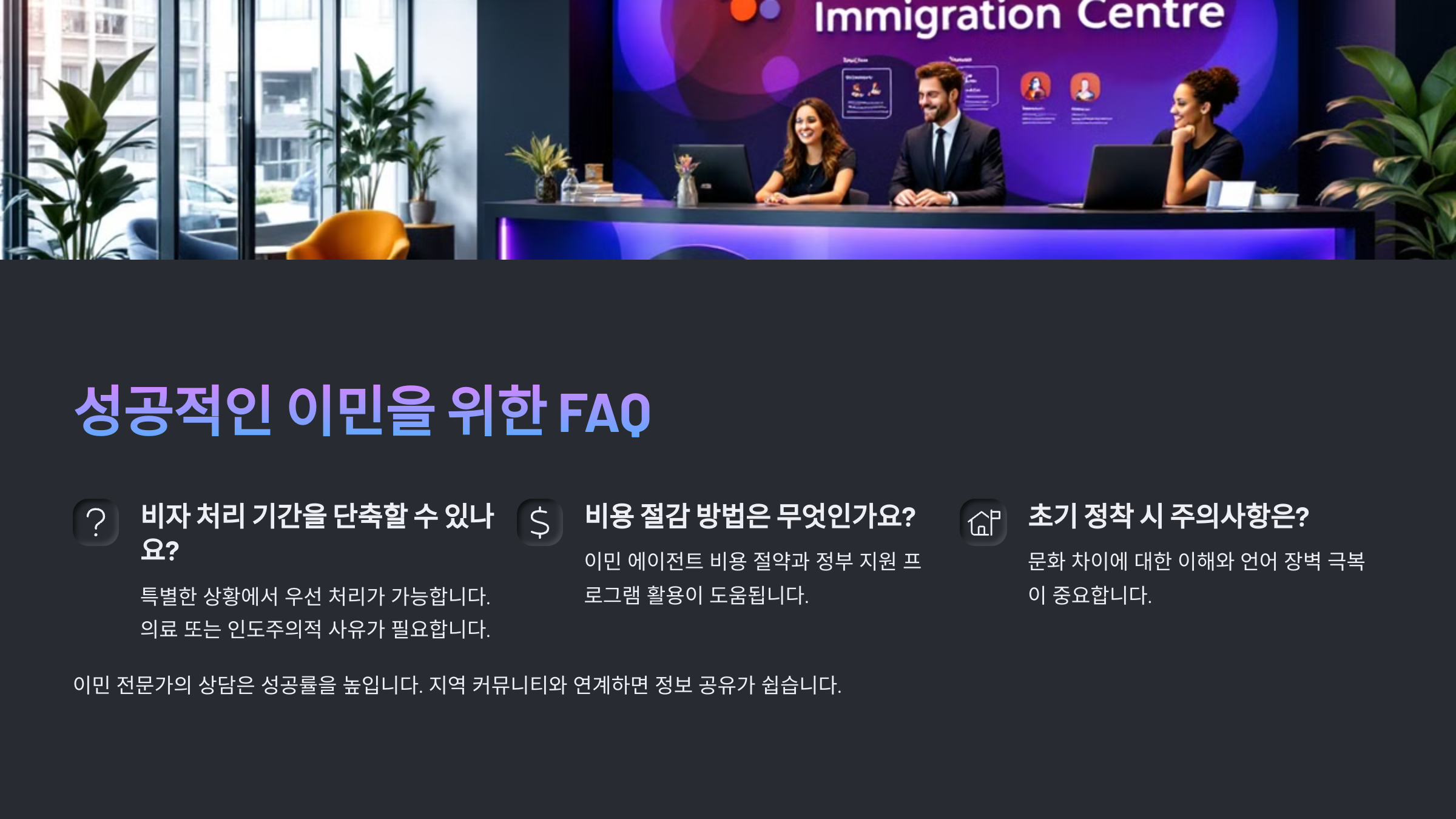 이제 거의 끝이 보이네요! 😊 다음은 "성공적인 이민을 위한 팁" 섹션이에요 👇 👇👇👇